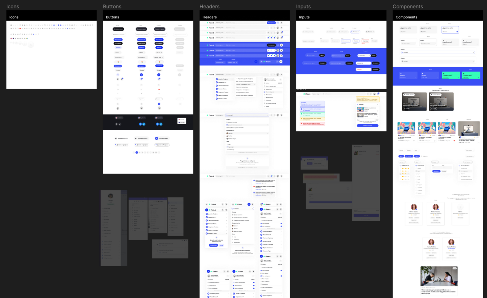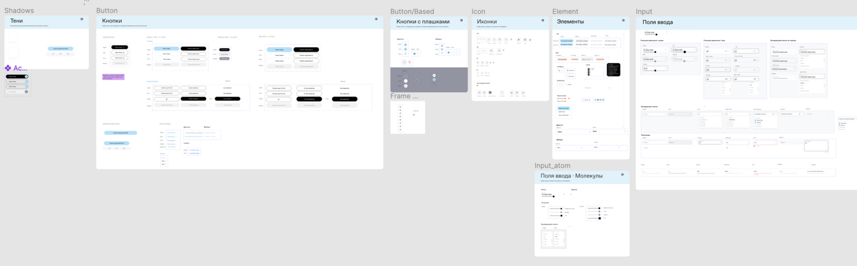 Есть и побольше UI-киты, но это тоже не должно тебя пугать, так как собирать всю эту систему будешь постепенно, когда начнешь делать проект. Например: сделали дизайн-концепцию, нарисовали дизайн главной - делаешь разделы базовые с типографикой, цветами, отступами и сеткой. А потом уже смотришь, какие элементы у тебя есть, которые будут повторяться, то есть у них есть свои состояния, определенный стиль. Самое банальное и что есть в каждом проекте: кнопки, инпуты, иконки, хэдер и футер. А потом уже, например, появляется календарь, чекбоксы, модалки — вносишь в UI-kit.